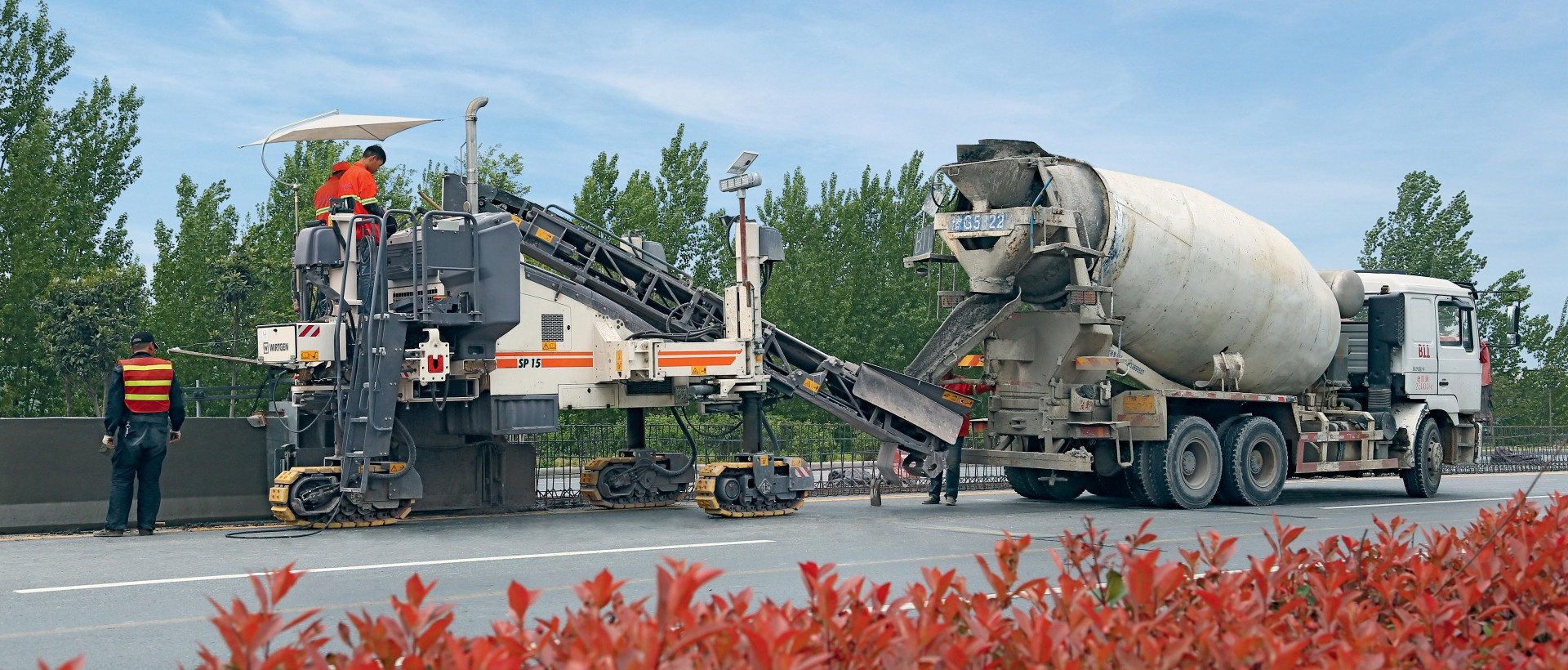Wirtgen SP15 slipform paver machines are compact and flexible machines, specialized in the production of monolithic concrete profiles such as protective concrete walls, kerb profiles, gutters or narrow paths. Offset profiles are obtained continuously in one piece, with or without reinforcement.
